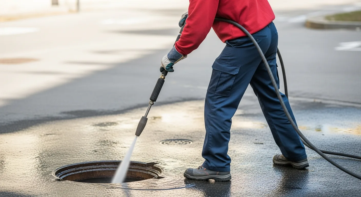 Regard extérieur, tout-à-l’égout, refoulements : intervention haute pression sur le réseau principal.